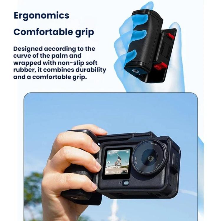 Tuotteessa on käytännöllinen pikakiinnitys, joka mullistaa kameran kiinnitystavan. Tämän innovatiivisen pikakiinnityksen avulla voit vaihtaa nopeasti eri jalustaa ja kiinnikettä, mikä on olennaista dynaamisissa kuvaustilanteissa. Lisäksi mukana tulee ergonominen kahva, joka parantaa otetta ja vakautta käsivaralta kuvattaessa. Tämä on erityisen hyödyllistä Flymile Osmo Action -käyttäjille, jotka haluavat paremman hallinnan kuviinsa. Kahvaa on mukava pitää kädessä myös pidempiä aikoja, mikä vähentää väsymisriskiä. Tämä Osmo Action 6 -kamerahäkki on enemmän kuin pelkkä suojus – se on täydellinen ratkaisu vakavasti otettavalle elokuvantekijälle. Suojauksen, joustavuuden ja helppokäyttöisyyden yhdistelmän ansiosta DJI Osmo Action 6 on valmis mihin tahansa seikkailuun. Investoi tähän kamerahäkkiin maksimoidaksesi kamerasi potentiaalin ja varmistaaksesi sen kestävyyden kaikissa projekteissasi. Se on lopullinen lisävaruste, joka vie kuvaamisesi seuraavalle tasolle.Toimitusaika 5-10 päivää