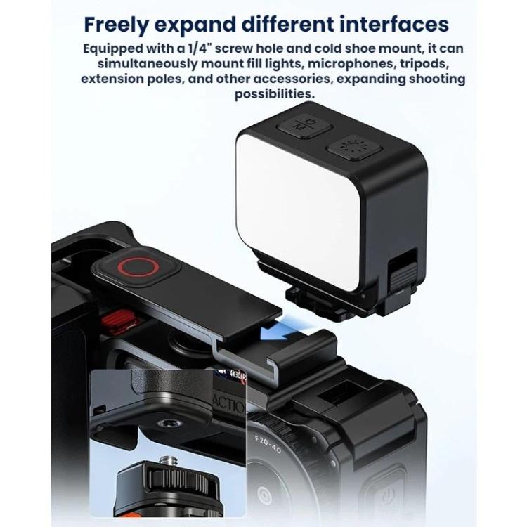 Tämä suojakehikko on suunniteltu erityisesti DJI Osmo Action 6:lle ja tarjoaa täydellisen istuvuuden ympäröiden kameran peittämättä tärkeitä portteja tai painikkeita. Tämän Osmo Action 6 -kamerakehikon avulla voit olla varma, että kamerasi on suojattu ankarimmiltakin olosuhteilta. Materiaali on kestävää ja kevyttä, minkä ansiosta kamera säilyttää ketteryytensä ja tarjoaa samalla erinomaisen suojan. Integroitu muotoilu helpottaa kameran kiinnittämistä ja irrottamista tarvittaessa.Joustavuutta ja helppokäyttöisyyttä pikalukituksen ansiosta