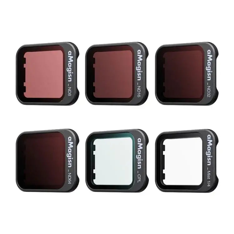 Tämä edistynyt suodinjärjestelmä on suunniteltu käsittelemään erilaisia valaistusolosuhteita, minkä ansiosta voit ottaa täydellisiä kuvia jopa haastavissa olosuhteissa. Jokainen DJI Flip aMagisn -suodinlinssi on tarkasti valmistettu tarjoamaan optimaalisen valonläpäisyn ja värineutraaliuden. Näiden suodattimien käyttö auttaa vähentämään veden ja lumen heijastuksia sekä parantamaan värikontrastia maisemakuvissa. Tämä on välttämätöntä erinomaisten tulosten saavuttamiseksi dronellasi.Monipuoliset suodattimet jokaiseen tilanteeseen