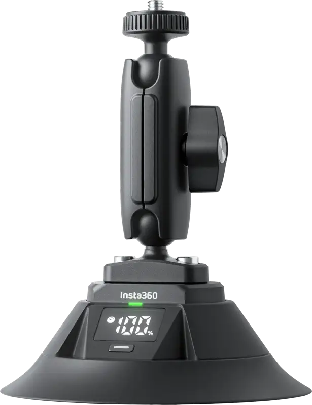 Den elektriska sugkoppshållaren från Insta360 är ett kraftfullt monteringsfäste för dig som vill filma action i hög fart utan att kompromissa med stabilitet. Perfekt på bilar, båtar, motorcykelkåpor, glasytor och andra släta ytor där du vill få kameran att sitta absolut säkert.