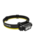 NU53 använder en tvåknappslayout med olika form på knapparna så att du lätt känner rätt, även med handskar. Lampkroppen är vinkelbar för exakt ljussättning: rakt fram vid rörelse, ned mot arbetsyta vid närarbete. Pannbandet är brett och stabilt så att lampan sitter still även när du rör dig snabbt eller bär hjälm/mössa. Proximity-sensor reducerar automatiskt ljuset på nära håll för att minska bländning och värme – uppskattat vid trånga ytor och reflekterande material.