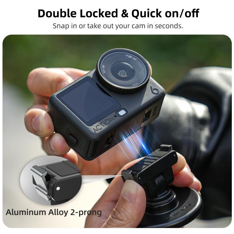 Tämä monipuolinen Osmo Action 6 -kiinnike on varustettu 180° kallistustoiminnolla, jonka ansiosta voit säätää kameran asentoa juuri haluamallasi tavalla. Tarvitsetpa sitten korkean tai matalan kuvakulman tai tietyn kallistuksen täydellisen hetken ikuistamiseen, tämä kiinnike on ratkaisu. Se toimii myös loistavasti pöydällä pidettävänä Osmo-pidikkeenä, joten se on ihanteellinen vloggaukseen, live-striimaukseen tai vain kameran pitämiseen valmiina seuraavaa kuvaa varten. Kompaktin muotoilun ansiosta se on helppo ottaa mukaan minne tahansa.Pikakiinnitys Action 6- ja Osmo Nano -lisävarusteille