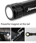 Ficklampans undersida är utrustad med en kraftig magnet som gör det möjligt att fästa den på metalliska ytor som exempelvis motorhuvar, verktygsskåp eller ställningar. Detta gör ficklampan idealisk för mekaniker, hantverkare och alla som behöver friare händer under arbete.