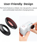 Du slipper fingeravtryck på glaset och kan snabbt byta filter även när du bär handskar eller arbetar i fuktiga miljöer. Den här praktiska detaljen gör filtret både användarvänligt och professionellt – redo för action när du är det.