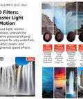 Oavsett om du filmar regniga landskap, undervattenssekvenser eller vintermiljöer, ger detta filter dig klarare, mer levande och tekniskt överlägsna bilder varje gång.