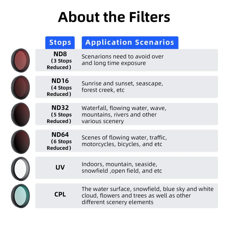 Optimera dina filmer och foton med det innovativa Osmo Nano snabbfilter-systemet från aMagisn, designat specifikt för DJI Osmo Nano. Detta avancerade filterkit är avgörande för att uppnå professionell bildkvalitet under varierande ljusförhållanden. Med ett Osmo Nano snabbfilter kan du enkelt anpassa din kamera för att hantera allt från starkt solljus till mer dämpade miljöer, vilket ger dig full k tiv kontroll.